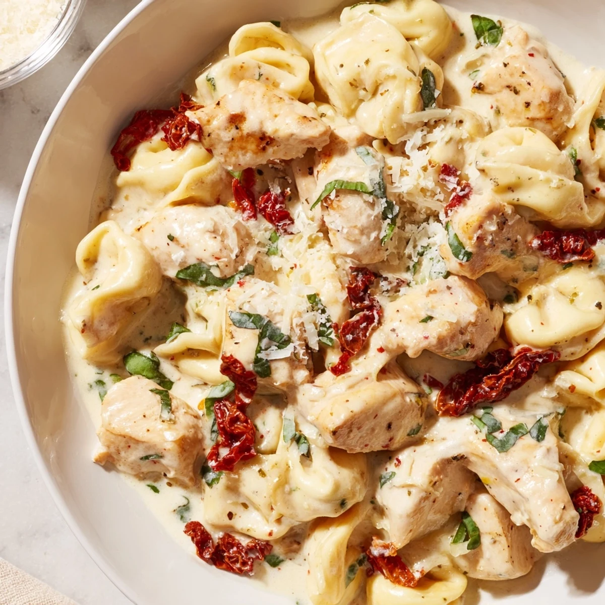 The sauce actually develops more flavor if you make it a day ahead and gently reheat it, though I recommend cooking the tortellini fresh so it does not absorb all the liquid and become mushy. Store the sauce and chicken separately from the pasta, then combine everything with a splash of cream when reheating.