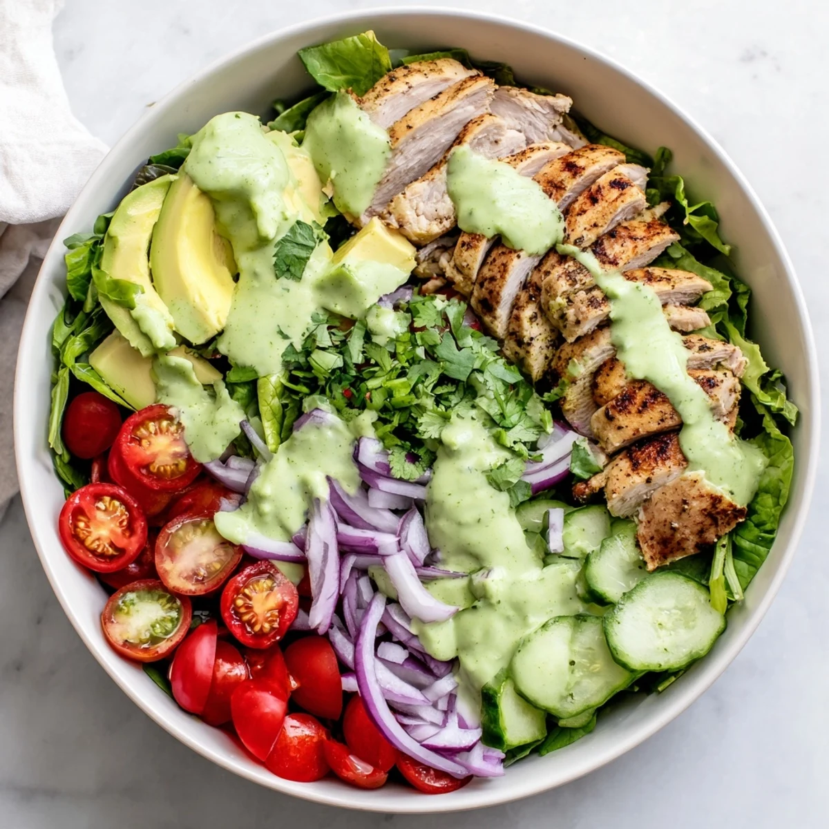 What makes this bowl sing is all the different textures happening at once. You get that char from the chicken the creaminess of avocado the crisp vegetables and that smooth dressing coating everything. Each bite feels like a complete experience.