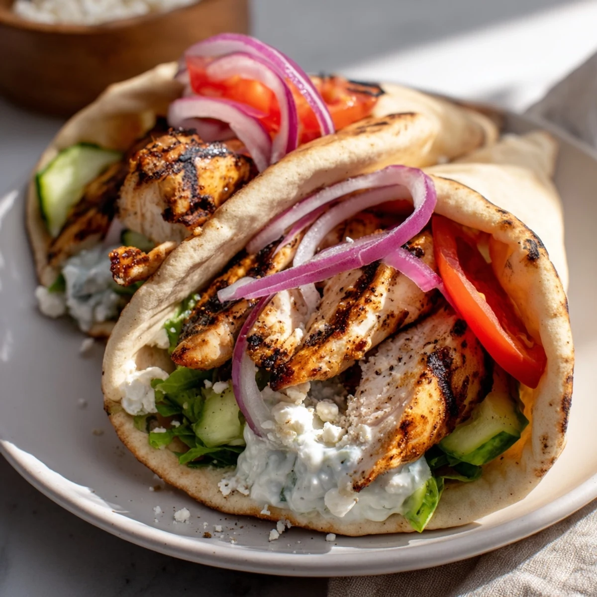 The first time I had this chicken pita was at a tiny family-run taverna in Athens where the owner's grandmother was actually cooking in the open kitchen. She kept bringing us small plates while we waited, and when the pitas finally arrived, they were wrapped in foil and still steaming from the grill. That memory of tzatziki dripping down my arm while sitting at a wobbly metal table is exactly what I try to recreate every time I make these at home.