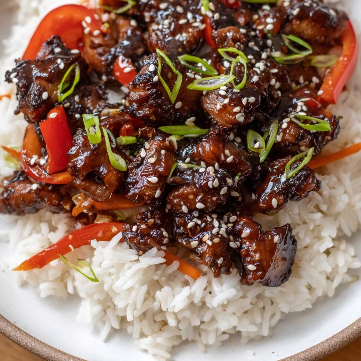 - Red bell pepper: Sliced into strips for pops of color and a subtle sweetness that contrasts the savory sauce.