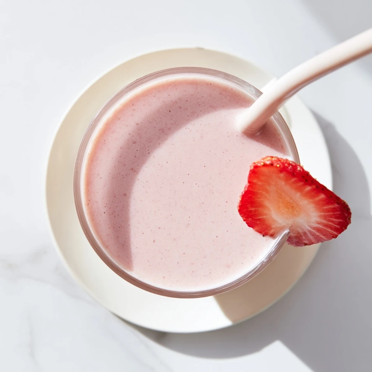 For best texture and freshness, blend and serve immediately. However, you can prepare ingredients the night before—hull and slice strawberries, peel and freeze the banana. Store in the blender jar in the refrigerator, then blend when ready. If storing blended portions, consume within 24 hours and give it a good stir or quick re-blend before drinking.
